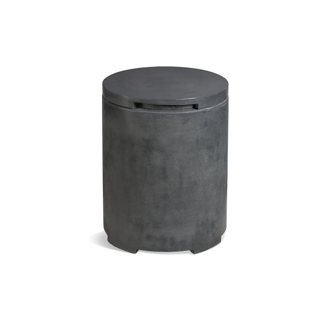 Heat-resistant glass fiber reinforced concrete conceals your propane tank even while it’s in use.